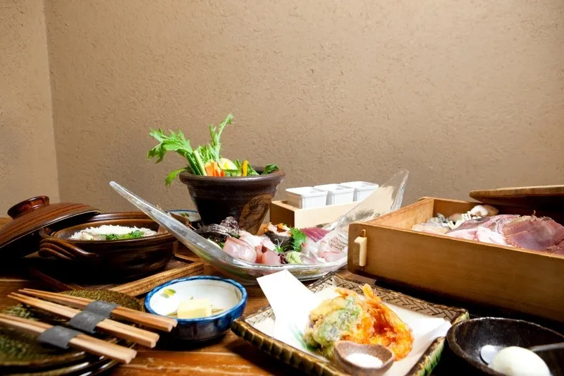 金沢駅から車で5分程の場所で営業しており、歩いて1分程の距離にバス停もございます。金沢城や兼六園といった観光名所も徒歩圏内にあり、観光時の食事の場としても気軽にお越しいただけます。地域に根差した居酒屋として、周辺にお住まいの方も気軽にお越しいただけるようなリーズナブルな価格帯で料理やお酒をご提供しており、飲み会にも最適な飲み放題付きのコースもございます。